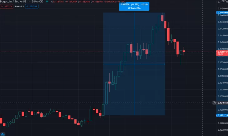 Tradingview verilerine bakıldığında da mavi çizgi ile gösterilen Elon Musk’ın tweet attığı anın, fiyatın yükselişi için belirleyici bir nokta olduğu görülüyor. Musk’ın tweeti sonrasında DOGE fiyatı %12 yükseliş elde etti ve tüm zamanların rekoruna çok yaklaştı.