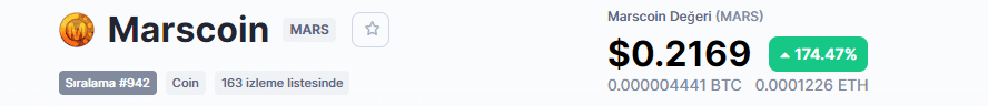 Elon Musk’ın “Marscoin” cevabından sonra uzun süredir var olan başka bir marscoin’in fiyatının %175 oranında arttığı gözlendi.