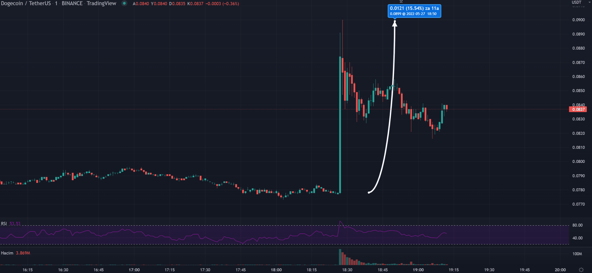 Yüzde 15’lik yükseliş yaşamasının ardından bir miktar geri çekilen DOGE, şu an duyurudan önceki fiyata göre yüzde 7 daha yüksekte işlem görüyor.