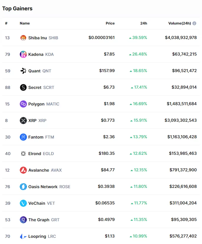 CoinmarketCap verilerine göre ilk 100 kripto para arasında son 24 saatte en çok kazandıranlar şu şekilde;