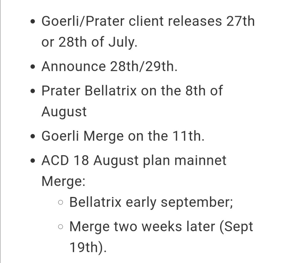 Ben Edgington tarafından paylaşılan bilgilere göre Ethereum Merge güncellemesi çeşitli işlemlerin ardından Eylül ortalarında (muhtemelen 19 Eylül) gibi gerçekleşecek.