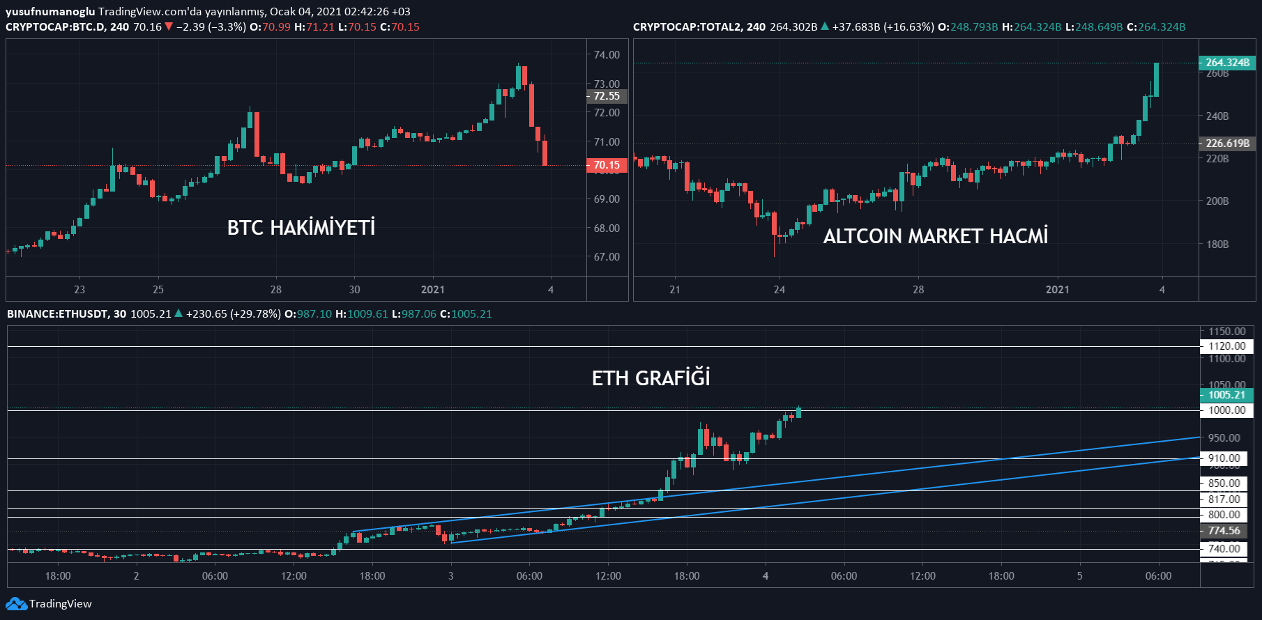 Özellikle altcoin rallisini başlatması açısından en önemli etken olan ETH fiyatı hakkında bugün yazdığımız analizde önemli seviyeleri belirtmiştik: