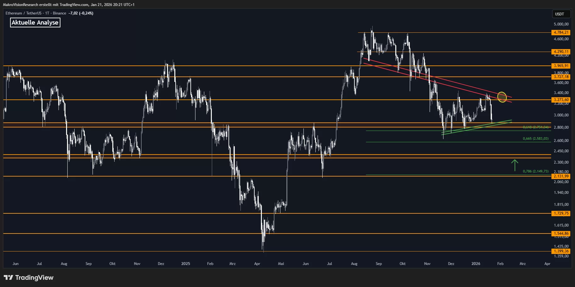 Şirketin değerlendirmesinde kısa vadeli görünümün kritik bir eşikte olduğuna dikkat çekildi. Buna göre 2.810–2.880 dolar aralığındaki turuncu destek bölgesi, Ethereum için şu an grafikteki en önemli seviye konumunda bulunuyor. ETH fiyatının bu bölgenin üzerinde kalması halinde yukarı yönlü yeni bir deneme ihtimali korunuyor. Ancak MakroVision, olası bir yükselişin kalıcı olabilmesi için net bir dönüş ve güçlü bir hareketin şart olduğunu ifade etti.
