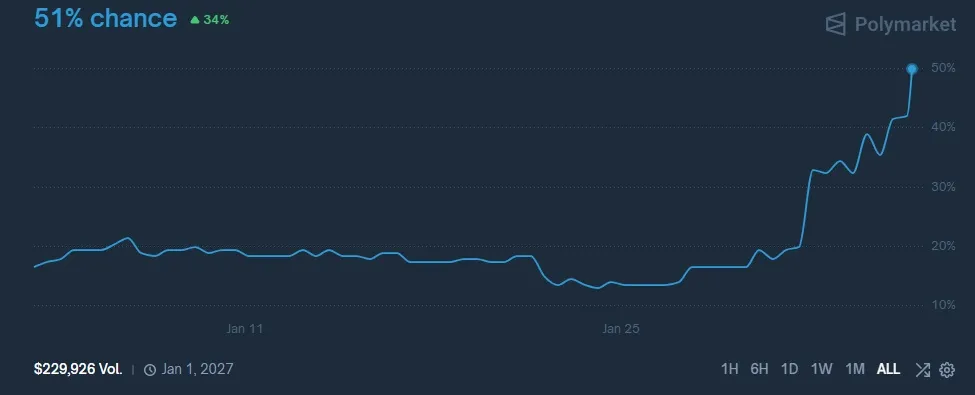 Kripto para tahmin platformu Polymarket’te başlatılan bir tahmin piyasası, 2026 yılına ilişkin dikkat çekici bir senaryoyu fiyatlamaya başladı.