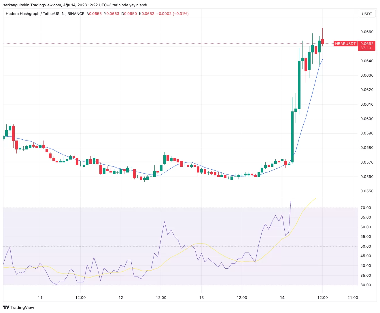 HBAR yazım esnasında 0,065 dolardan işlem görmeye devam ediyor.