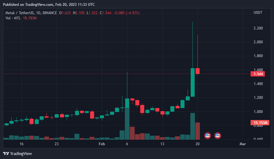 Çinli kripto para gazetecisi Wu Blockchain bu yaptığı paylaşımda Güney Kore’nin en büyük kripto para borsası Upbit’de Metal Pay (MTL) isimli mem tokenin işlem hacminde büyük artış olduğunu duyurdu.