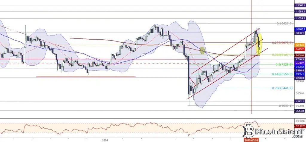 Geçtiğimiz hafta 10000 direncine kadar ivmelenen BTCUSD bulunduğu alanda satış baskısıyla karşılaşarak 8107 desteğine kadar çekildi. Sonraki süreçte long pozisyonların hacmindeki artışla birlikte tekrar ivme kazanan kripto para birimi 9000 direncini aşmaya çalışıyor.