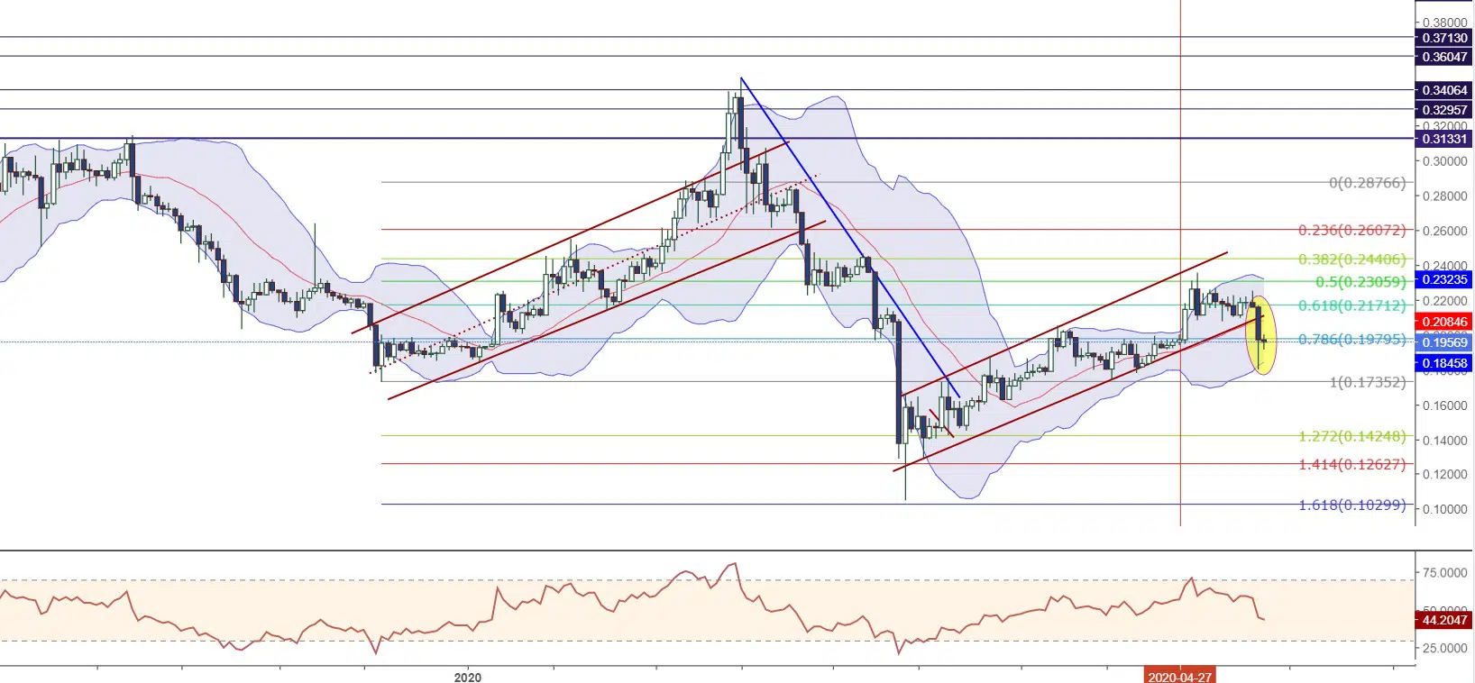 Bu noktada, 0.1979 seviyesinin kırılamaması yer yer satış baskısına neden olabilir. Böylelikle, ilk etapta 0.1735 desteğine kadar çekilme meydana gelebilir. 0.1735 desteğinin dikkatle takip edilmesi gerektiği düşünülüyor. Olası aşağı yönlü bir kırılımda sert geri çekilmeler meydana gelebilir ve 0.1424 desteği takip edilebilir.