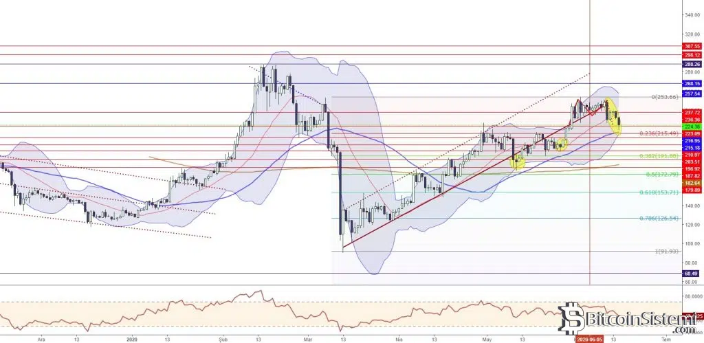 Satış baskısının devam etmesi ve 223’ün altında kalıcılık sağlaması halinde kripto para biriminde 215, 210 ve 203 destekleri takip edilebilir. Bu noktada 200’lü seviyelerde tutunması tekrar alımları tetikleyebilir. 200’lü seviyelerin aşağı yönlü kırılması ise satış baskısını artırabilir.
