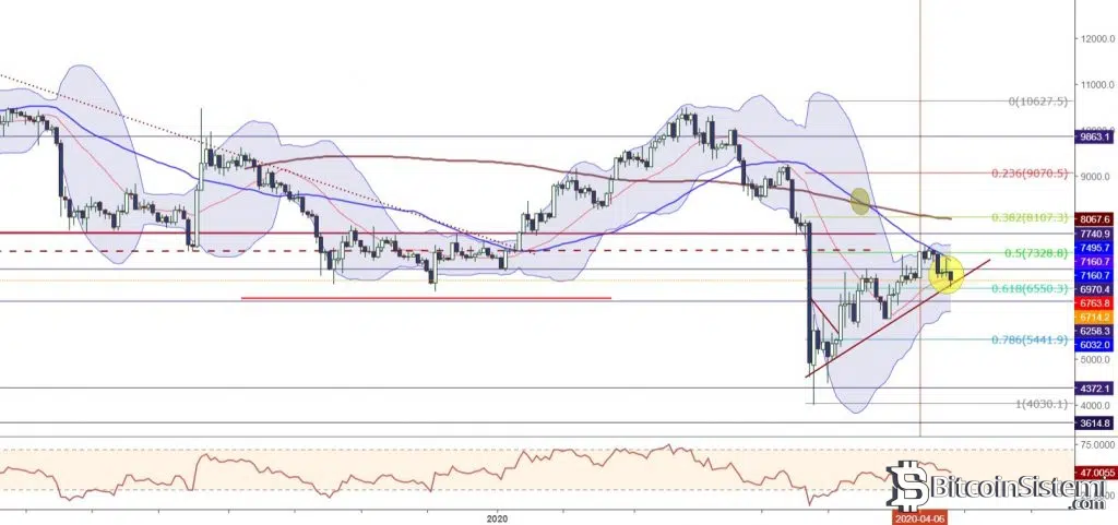 7328 direncini periyodik olarak yukarı yönlü test eden BTCUSD, bulunduğu alanda satış baskısıyla karşılaşarak 6550 desteğine kadar geri çekildi. Halihazırda üzerinde durulan desteği ve 20 MA’yı test eden kripto para biriminin günlük grafikte aşırı satım bölgesine ilerlediği gözlemleniyor.