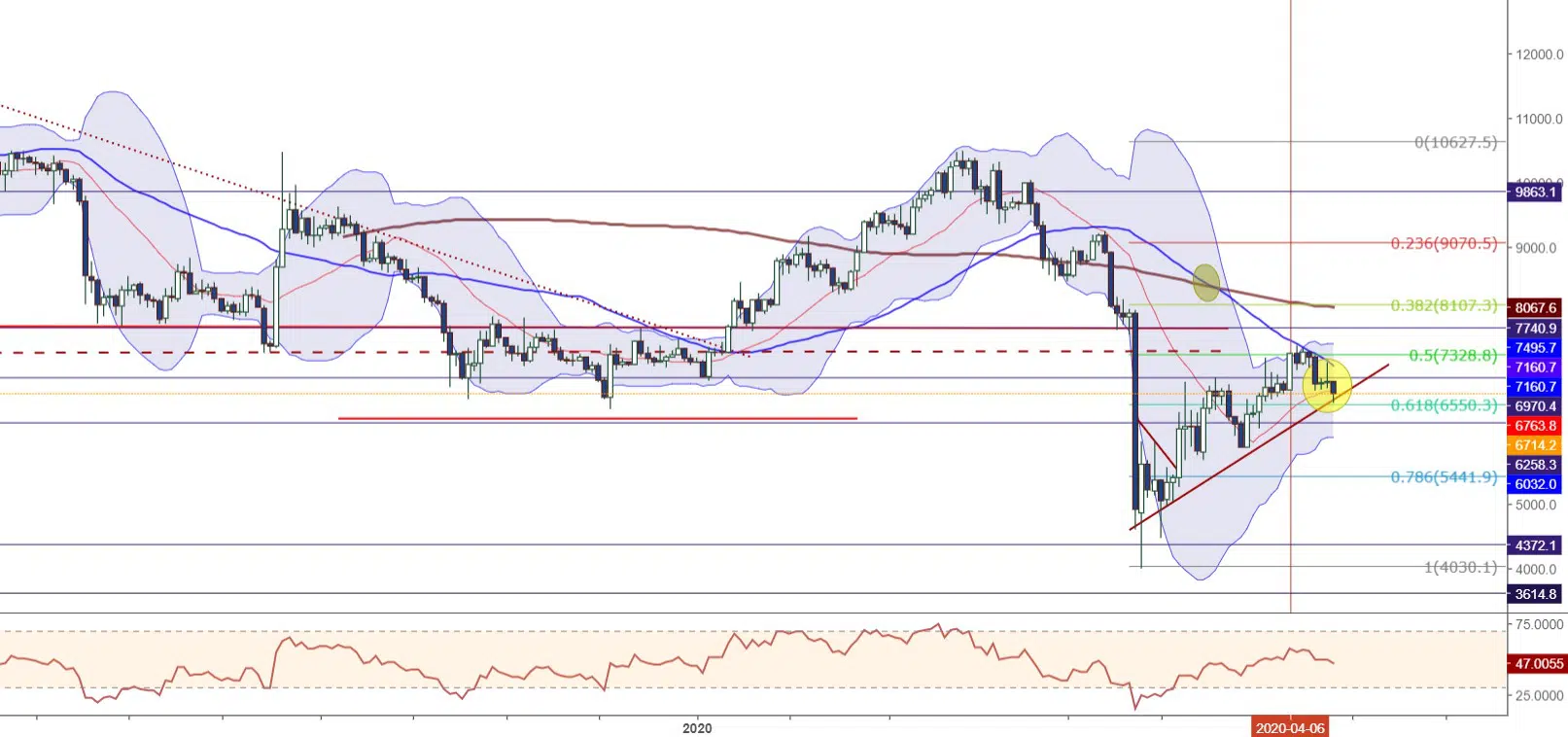 7328 direncini periyodik olarak yukarı yönlü test eden BTCUSD, bulunduğu alanda satış baskısıyla karşılaşarak 6550 desteğine kadar geri çekildi. Halihazırda üzerinde durulan desteği ve 20 MA’yı test eden kripto para biriminin günlük grafikte aşırı satım bölgesine ilerlediği gözlemleniyor.