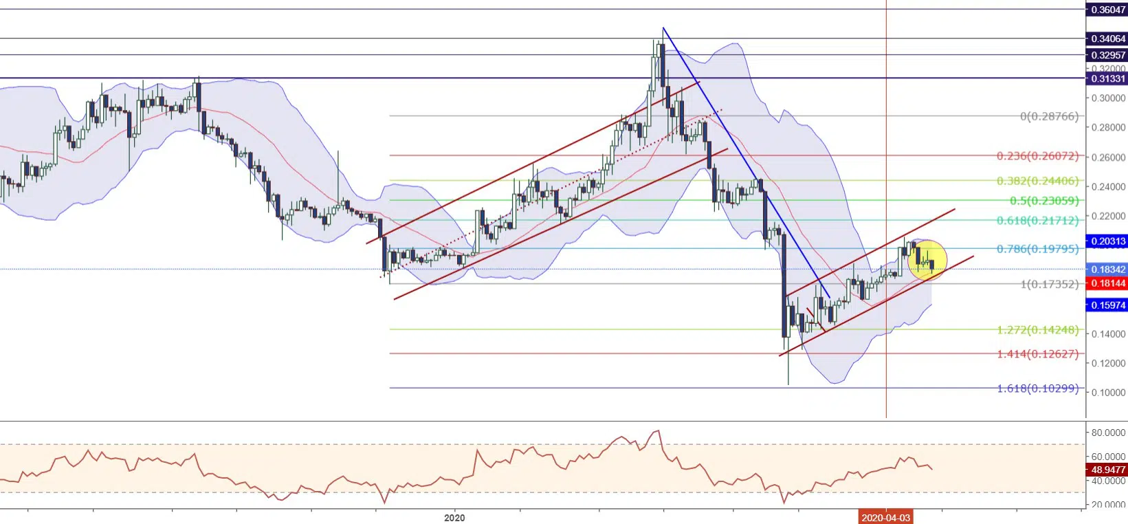 0.1979 direncinin üzerinde kısıtlı kalan alımlara sahne olan XRPUSD, satış baskısı karşısında günlük grafikte 20 MA eksenine çekilmiştir. Short pozisyonlardaki hacim artışının devam etmesi durumunda kanal desteği ve 0.1735 seviyesinin göz önünde bulundurulabileceği düşünülmektedir.