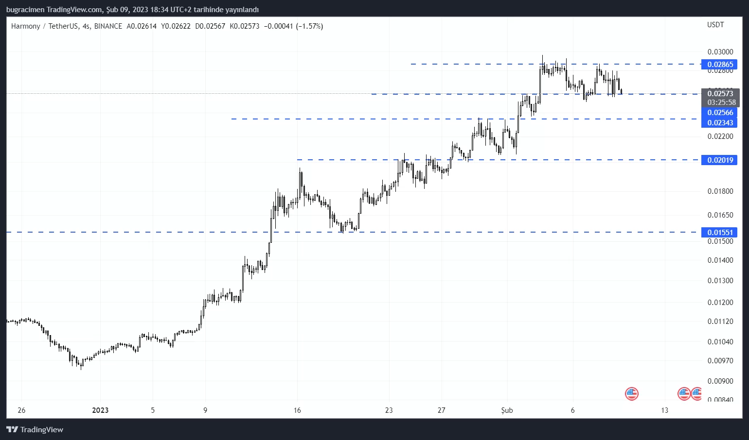 $ONE an itibariyle 0.0256$ desteği üzerinde tutunmaya çalışıyor. Bu seviye kaybedildiği takdirde bir alt destek 0.0234$’da bulunuyor.