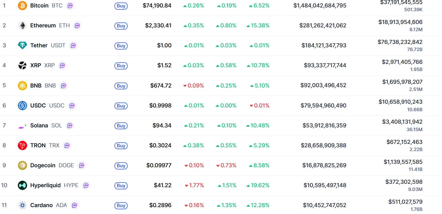 Coinmarketcap’ta ilk 10 sıralamasında değişiklikler meydana geldi. Buna göre Hyperliquid, dikkat çekici bir performansıyla Cardano (ADA)‘yı geride bıraktı.