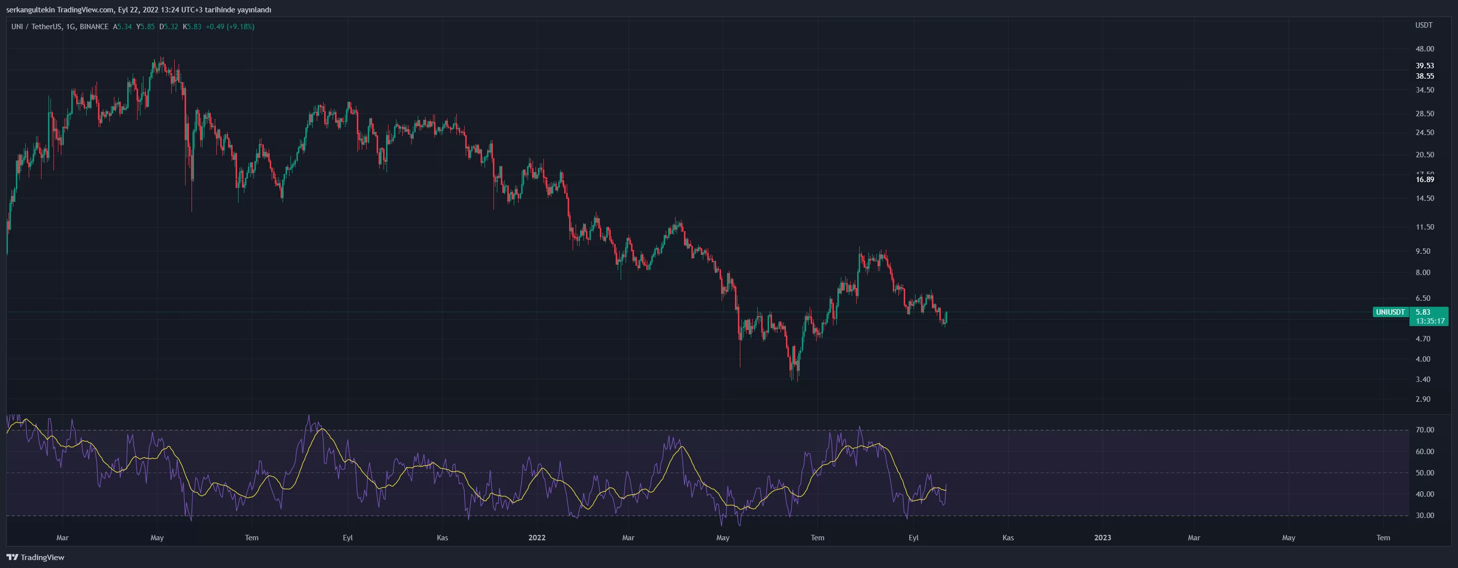 Uniswap bugün %9’luk bir yükselişle 5,83$ seviyesinden işlem görüyor.