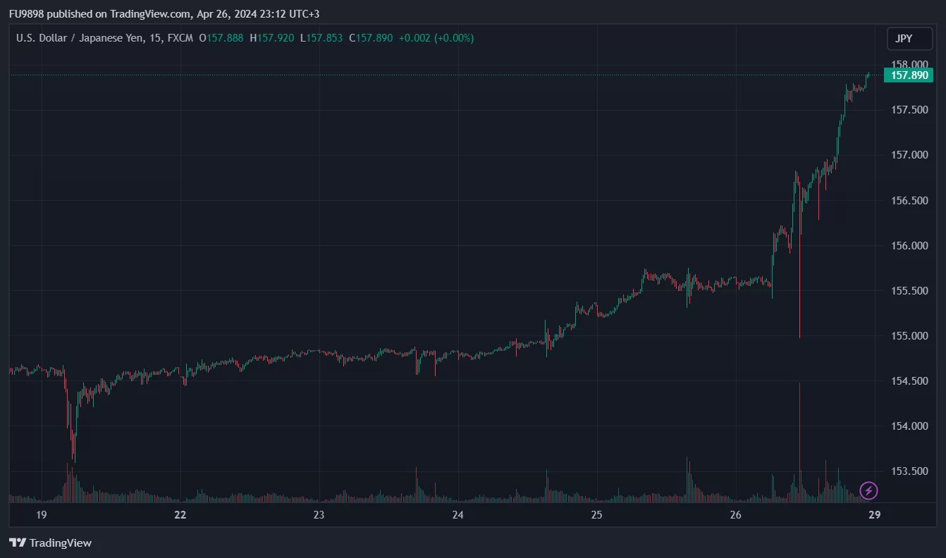 Japon yeni (JPY) gün içinde %1.3 daha düşerek bu büyük para birimi için önemli bir değişime işaret etti ve ABD doları karşısında 1990’dan bu yana en zayıf seviyesine geriledi. Bu durum, Japonya Merkez Bankası’nın (BOJ) faiz oranlarını sıfıra yakın seviyede tutması ve değer kaybeden para birimine ilişkin çok az endişe ifade etmesinin ardından gerçekleşti.