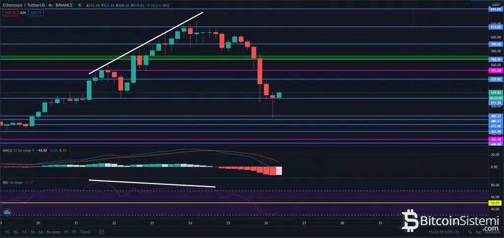 Yayın saati itibariyle 511 dolarlık seviyeden destek alan ETH’de daha önceki belirtmiş olduğumuz seviyeler geçerliliğini yitirmemiş bulunuyor.
