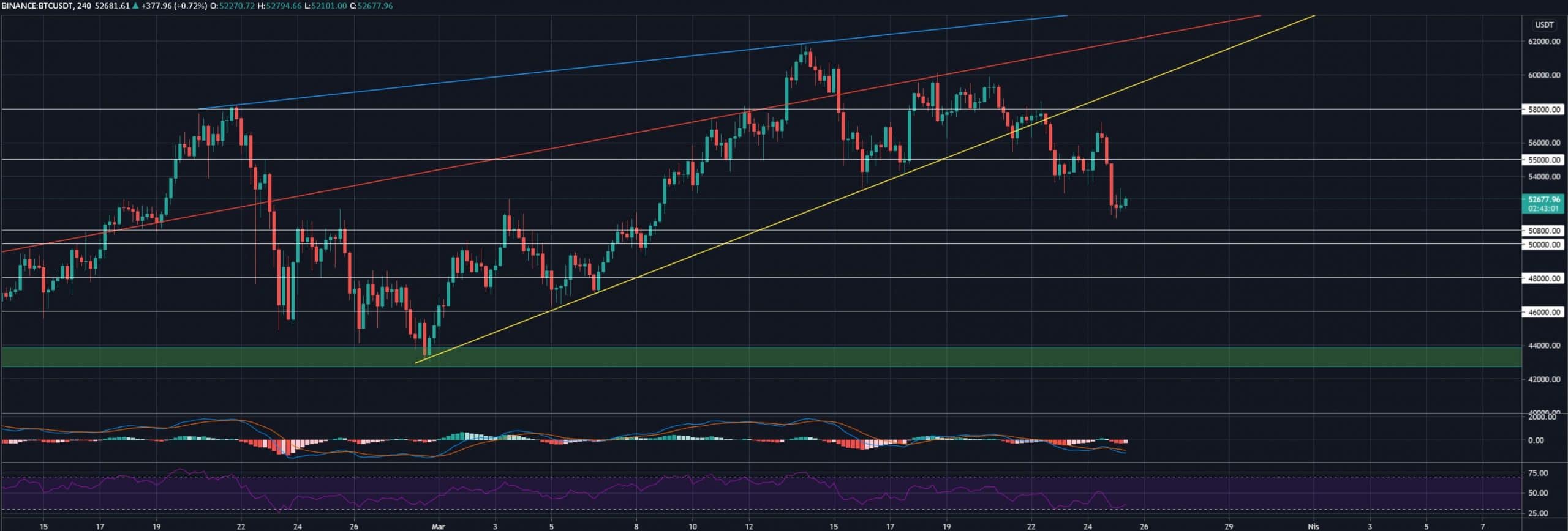 Bitcoin fiyatı için uzmanlara göre bundan sonraki en kritik seviye ise 46.000 – 48.000 dolar olarak seviyeleri olarak ifade ediliyor. Yine BTC’nin kendini tehlikeli bölgeden kurtarabilmesi için kırması gereken önemli direnç seviyesi ise 55.000 dolar seviyeleri olarak karşımıza çıkıyor. Aşağıdaki grafikten önemli seviyeleri takip edebilirsiniz: