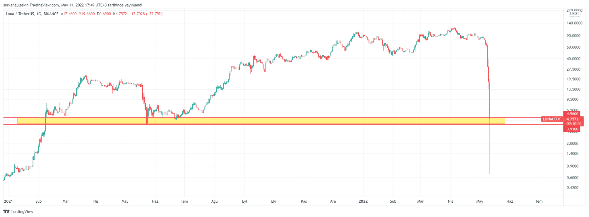 LUNA’da volatilite oldukça yüksek bu nedenle kaldıraçlı işlemlerden uzak durulması tavsiye ediliyor.