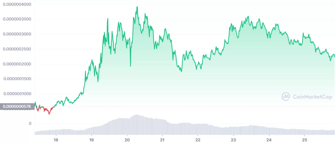 DOGE ve SHIB önceki seviyelerine gerilese de piyasa değeri nispeten küçük mem tokenlarda yükseliş hareketi devam ediyor. Örneğin 17 Nisan’da Gate gibi bazı merkezi borsalarda listelenen PEPE token bir hafta içerisinde 7 kat değerlendi.