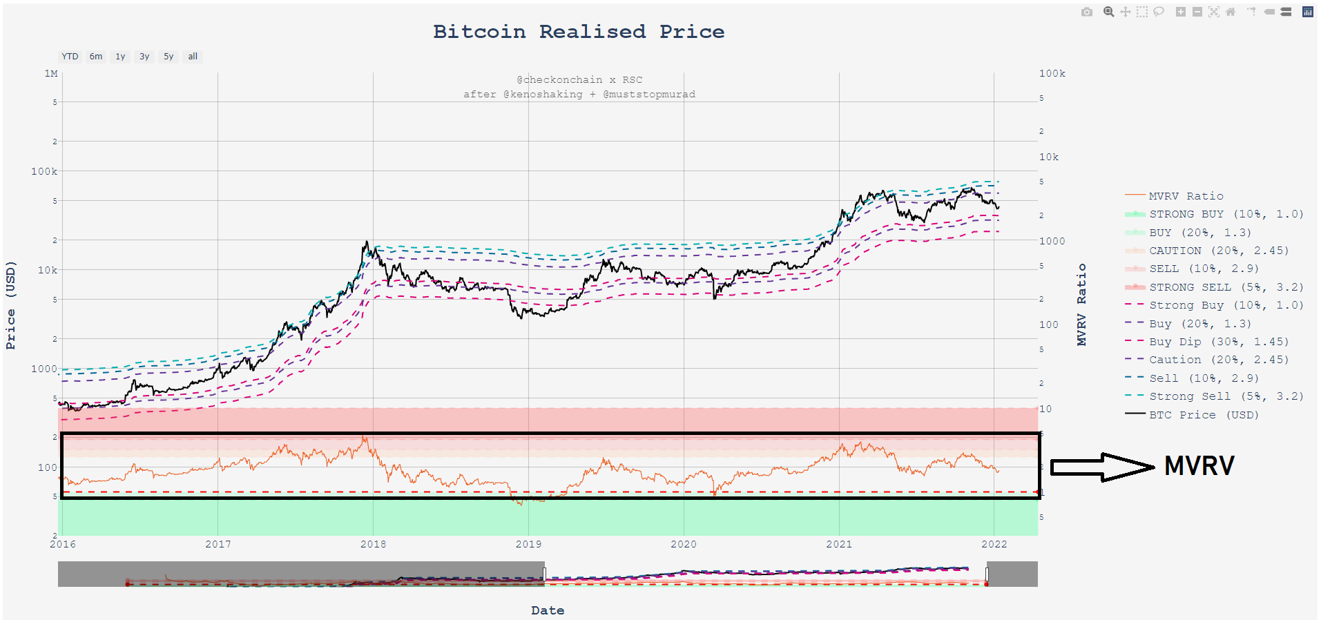 Şimdi o tabloya göre 2016-2019 yılları arasındaki MVRV oranı ve bize gösterdiği diplere tepelere bakalım aşağıdaki tablodan.