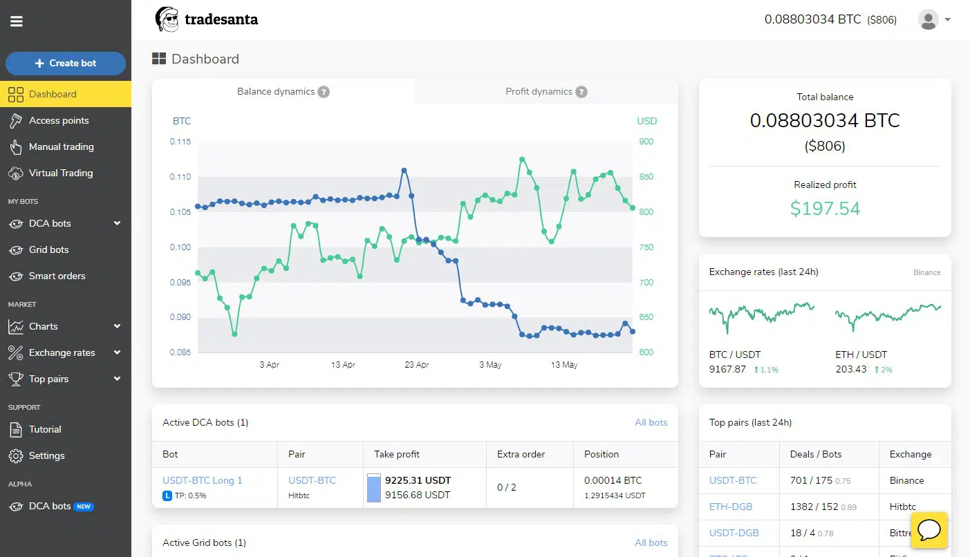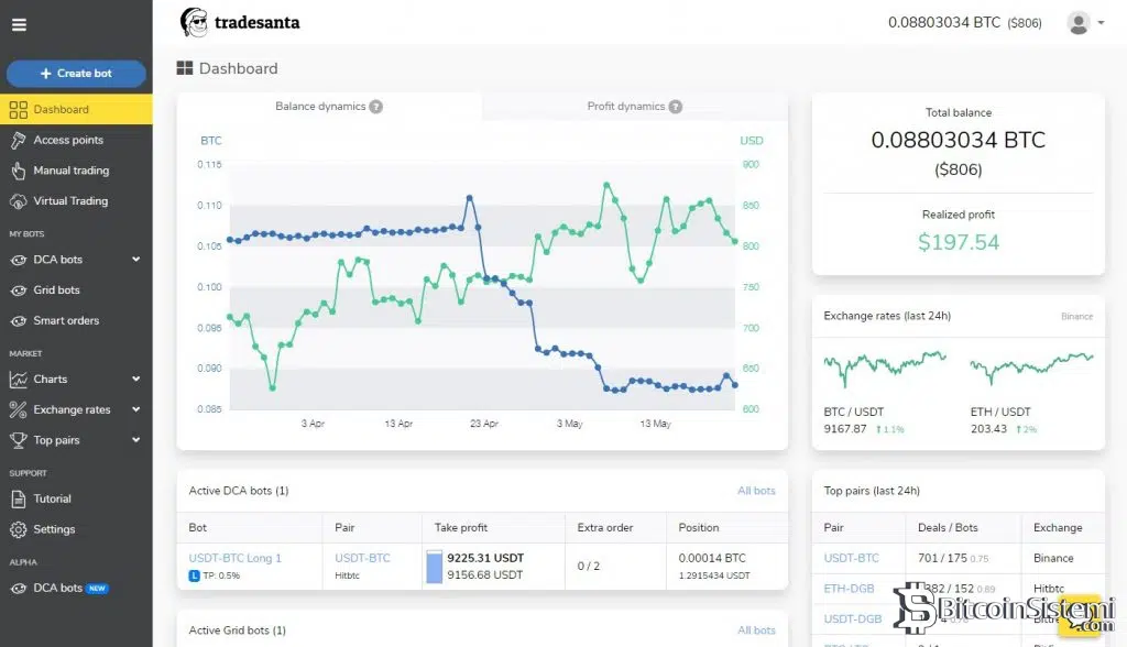 Aktif olarak 73278 kullanıcı, 15611 ticaret botu bulunan ve 2 senedir hizmet veren TradeSanta, bu alandaki en büyük ve en tercih edilen platformların başında gelmektedir.