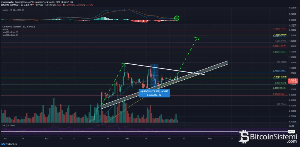 ADA fiyatının bu hareketi yapabilmesi için 1.214 dolar üzerindeki kapanışlarını sürdürmesi gerekiyor. Şayet belirtilen bu şartlar ADA üzerinde sağlanırsa, ara dirençler dışında ilk önemli direnç alanı olarak gösterilen 1.971 – 1.996 dolar aralığına bir yükseliş görülebilir. Yani bu da 2 dolarlık psikolojik seviyeye işaret ediyor.