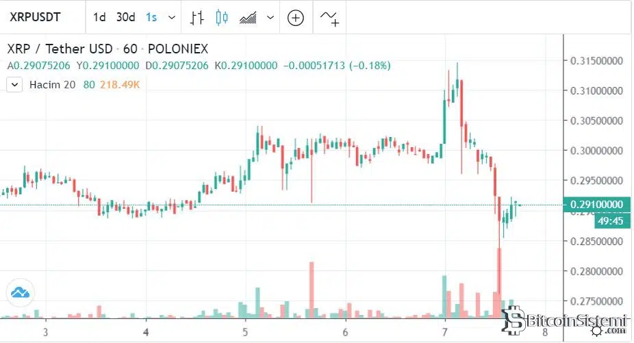 Ayrıca etkinlik başlamadan önce 0,315 dolar seviyelerine kadar yükselen XRP etkinliğin başlamasından sonra geri çekilme yaşadı. Unutmamak gerekir ki genellikle böyle durumlarda olumlu bir olay gerçekleşmeden önce fiyat artar daha sonrasında beklenti gerçekleştiği zaman ise kar satışı dolayısıyla fiyat düşer.