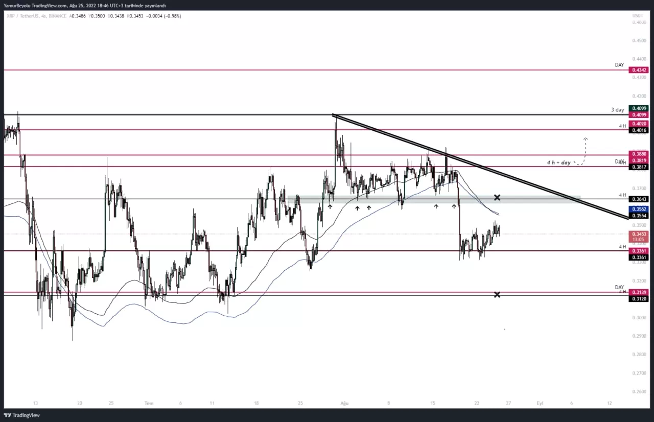 Teknik olarak incelediğimizde ise 30 Temmuz tarihinden bu yana oluşmuş olan üçgen yapısının alt taban seviyesine denk gelen 0.3643 dolar desteğini sert bir şekilde kırarak yaklaşık %9 değer kaybeden XRP 0.3361 dolar desteğinde tutundu.