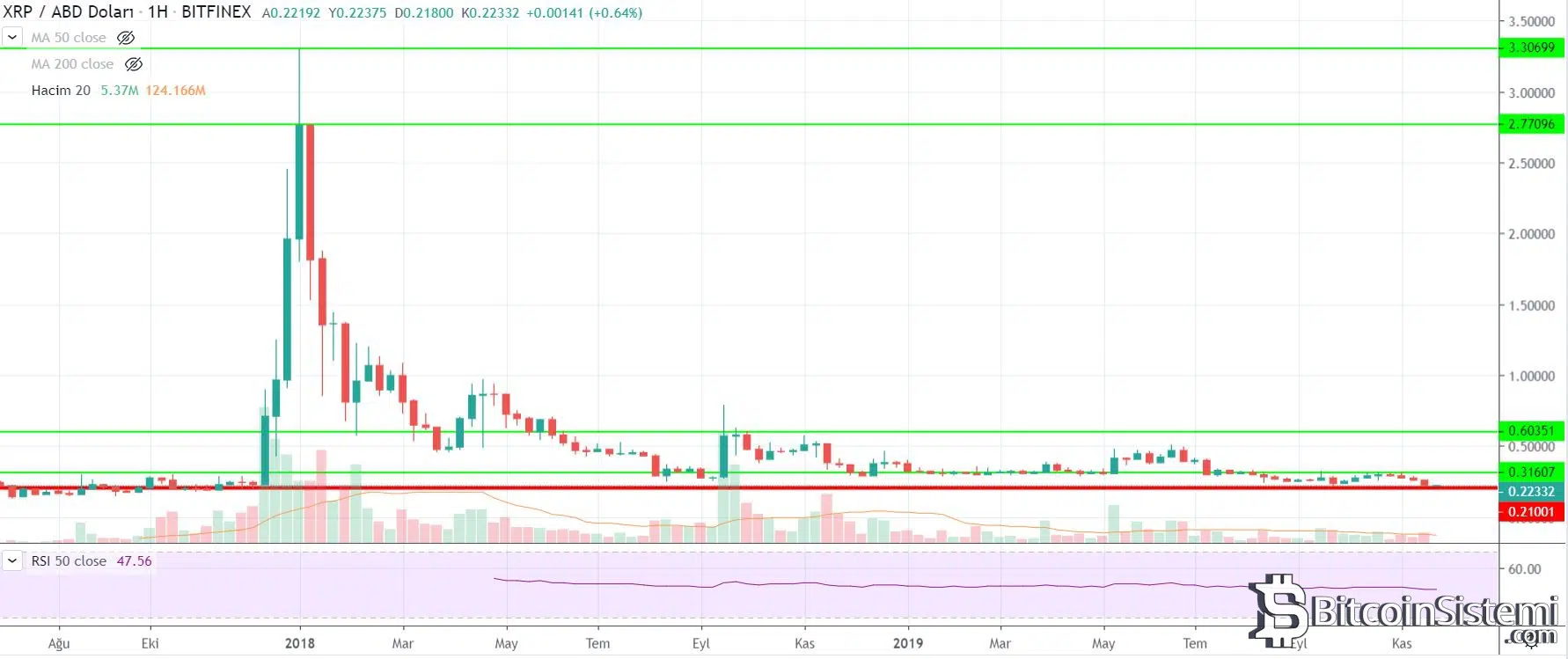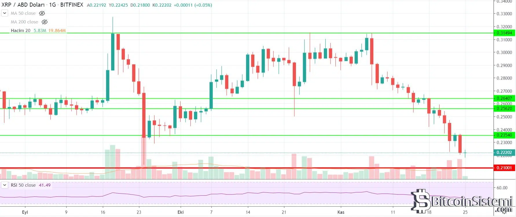 An itibarı ile 0,210 dolar seviyesinde önemli bir psikolojik desteği bulunan XRP’de direnç seviyeleri de 0,230 0,235 ve 0,245, 0,256 dolar olarak karşımıza çıkıyor.