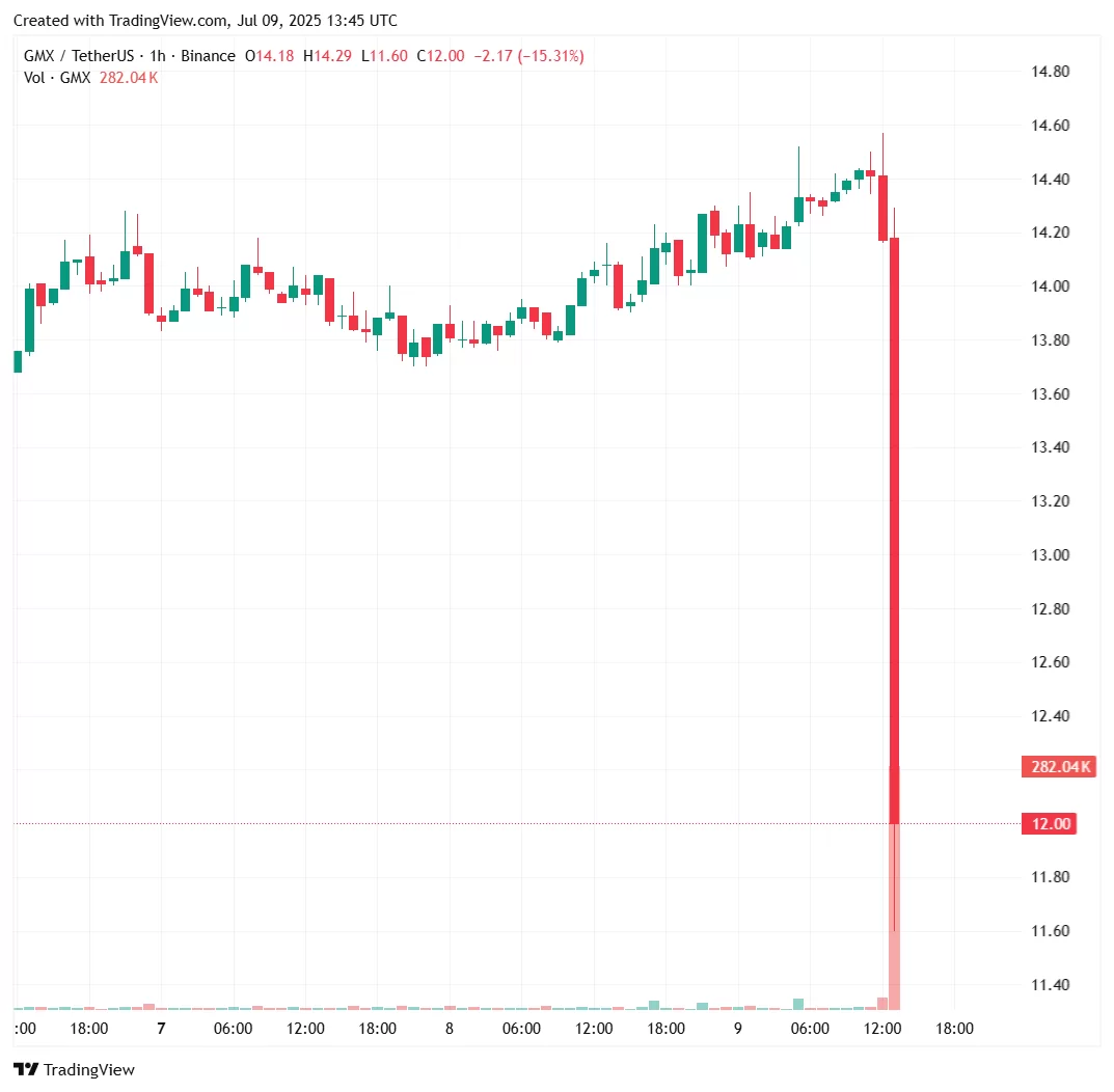 Haberlerin ardından GMX fiyatı kısa sürede sert düşüş yaşadı.