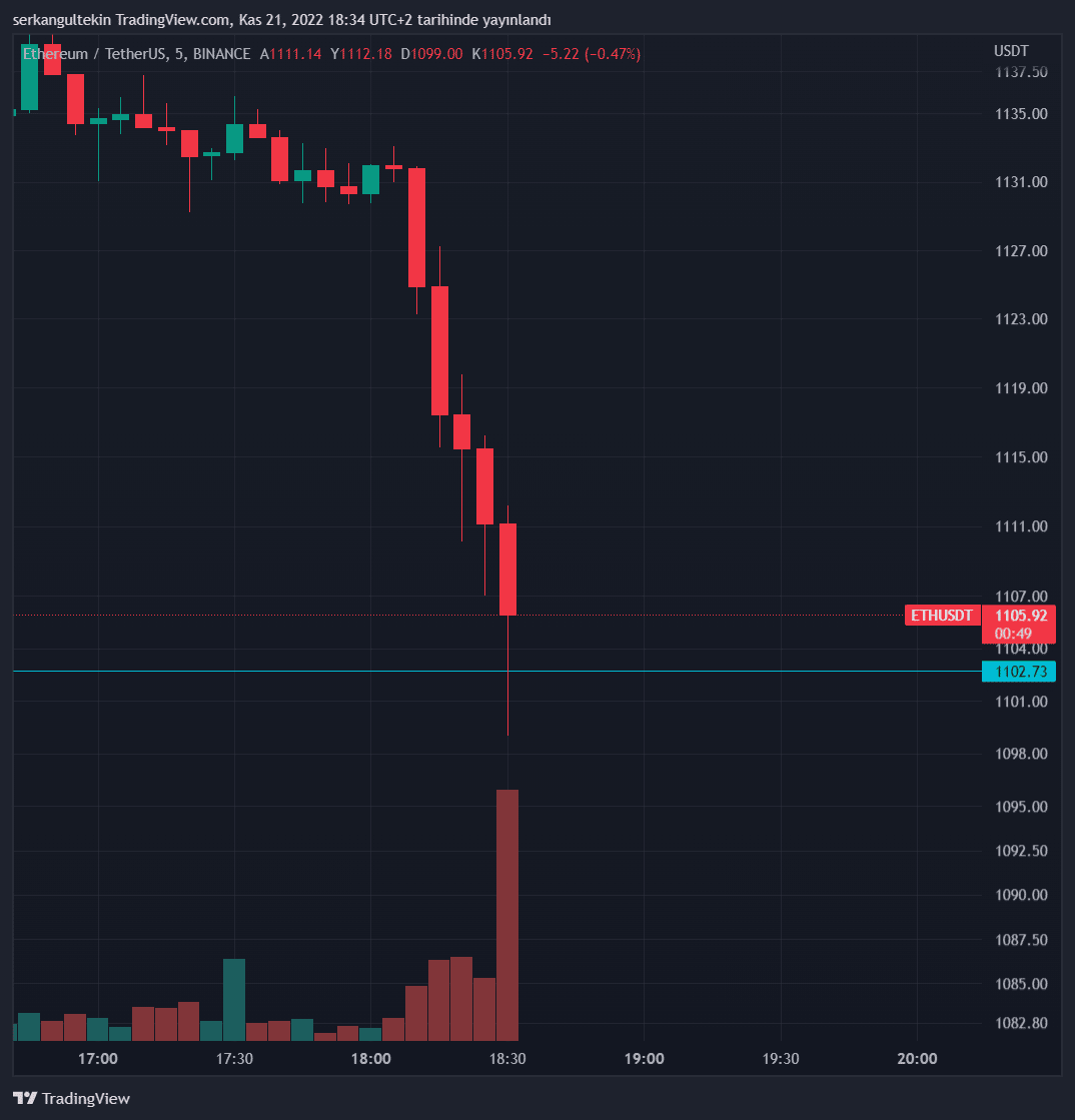 Kısa sürede yayılan haber paniğe neden olurken Ethereum fiyatı 1099$’a kadar geriledi.