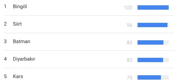 Google arama motorunun ilgi alanı sekmesinin geçen yılki sonuçları incelendiğinde ünlü kripto değerle en alakadar illerin başında Bingöl, Siirt ve Batman geliyor.