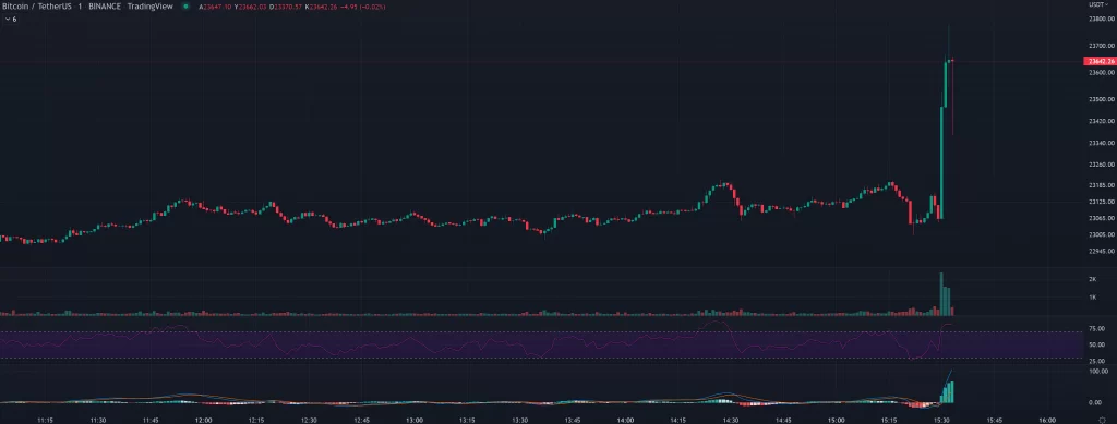 Gece saatlerinde 22.600 dolara kadar iğne atan Bitcoin, son verilere yükselerek cevap verdi: