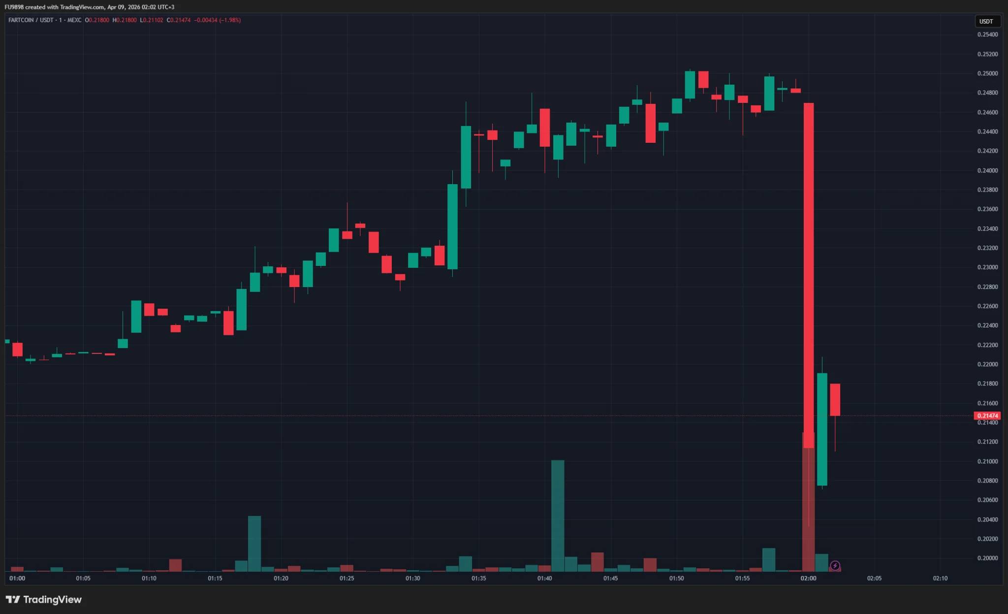 FARTCOIN fiyatında yaşanan yükseliş ve düşüşü gösteren grafik.