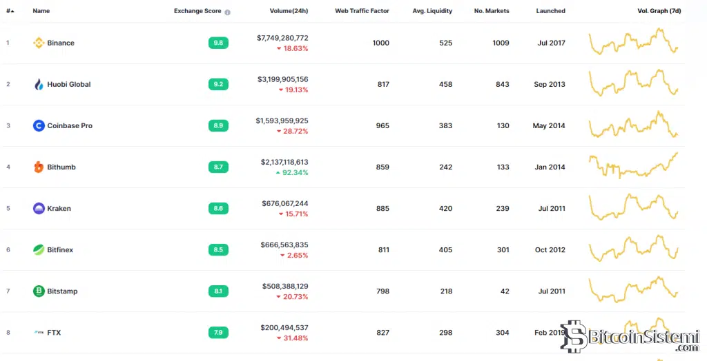 2011 yılından bugüne kadar faaliyetine devam eden Bitstamp, hacim bakımdan 7. büyük borsa.