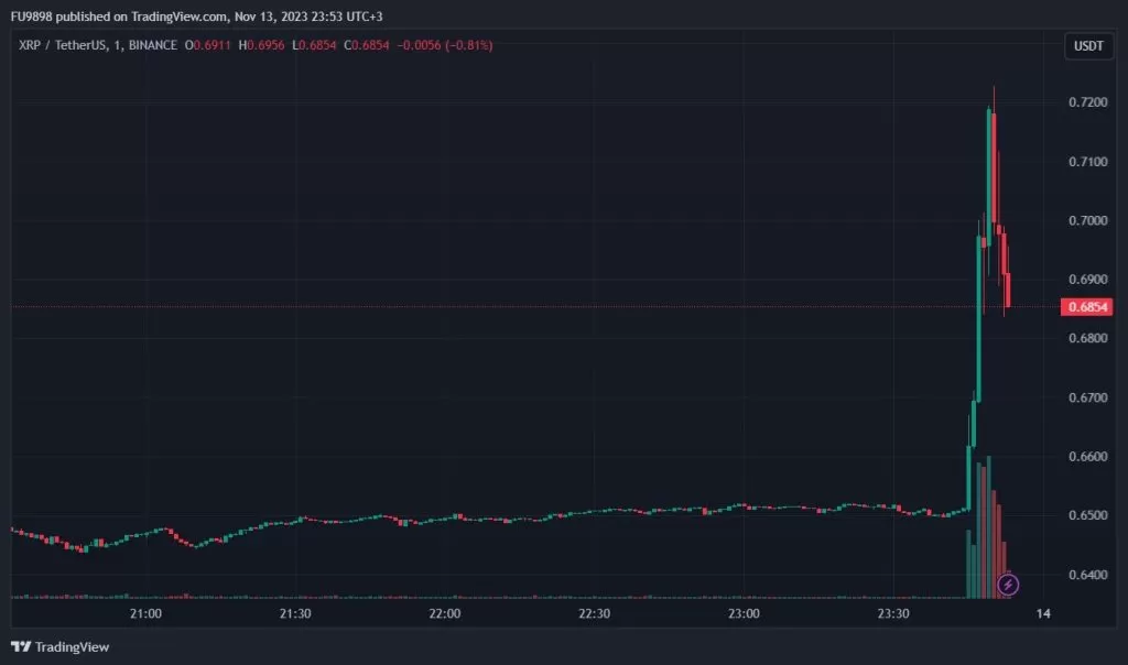 Haberin ardından XRP fiyatı ani bir yükseliş ile 0.72 doları gördü.