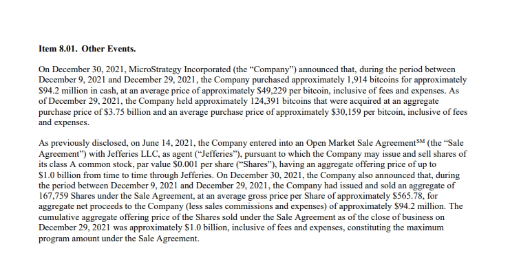 MicroStrategy önceki alımlarında olduğu gibi bu alımını da SEC’e bildirdi.