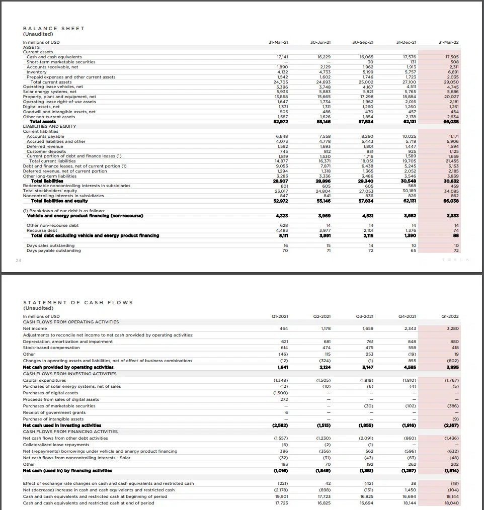 Bitcoin yatırımcısı Tesla 2022 ilk çeyrek bilançosunu açıkladı.