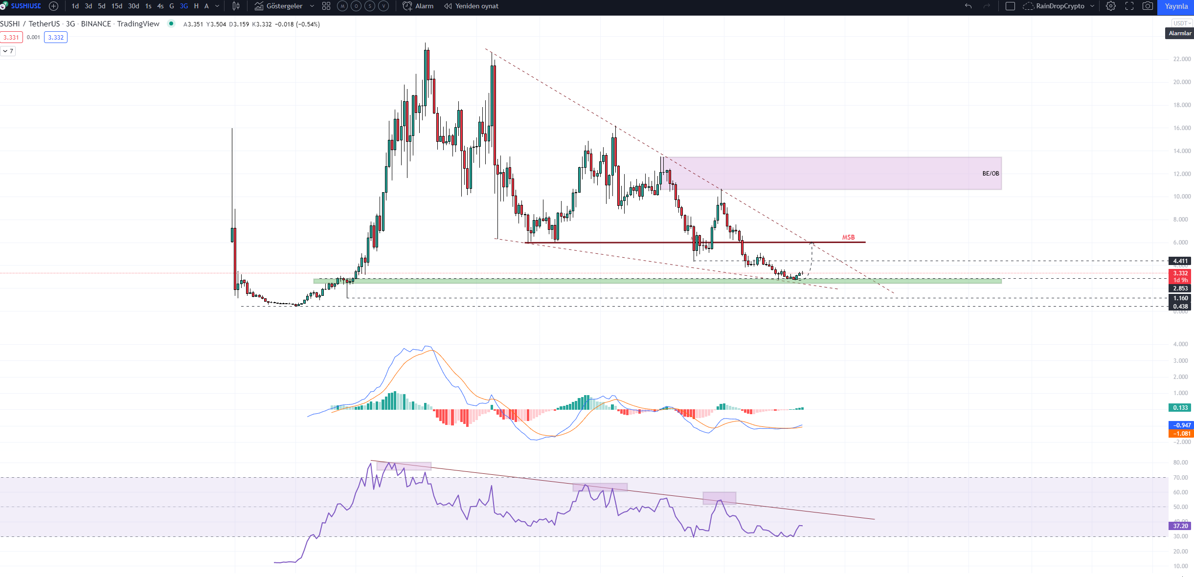 Oluşacak piyasa şartları ve SUSHI tarafından gelen yeni gelişmelerin onaylanması ile Token’nin yönünün netleşmesi hakkında bize fikir vereceği düşüncesindeyim.