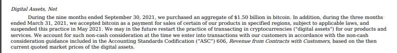 “30 Eylül 2021’de sona eren dokuz ay süresince toplam 1,50 milyar dolarlık bitcoin satın aldık. Ayrıca, üç ay boyunca