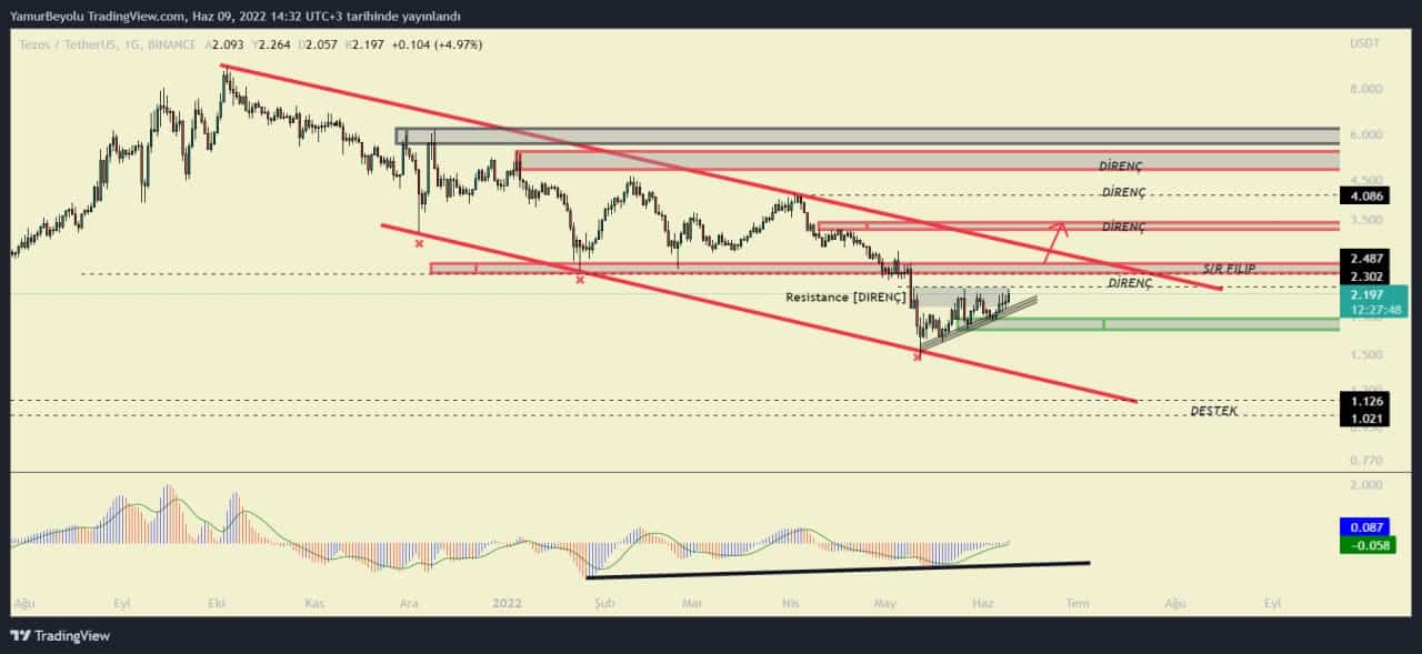 Aksi durumda ise; hem trend alanı olan hem de önemli talep bölgesi olan 1.76 ve 1.88 dolar bölgesi altındaki kapanışlarda alt destek seviyelerine geri çekilmeler görülebilir. Hem piyasa metriklerin pozitif ilerlemesi hem de Tezos (XTZ) tarafından gelecek olumlu haberlerin baskılanması yükselişin devamı için tetikleyici olacaktır.