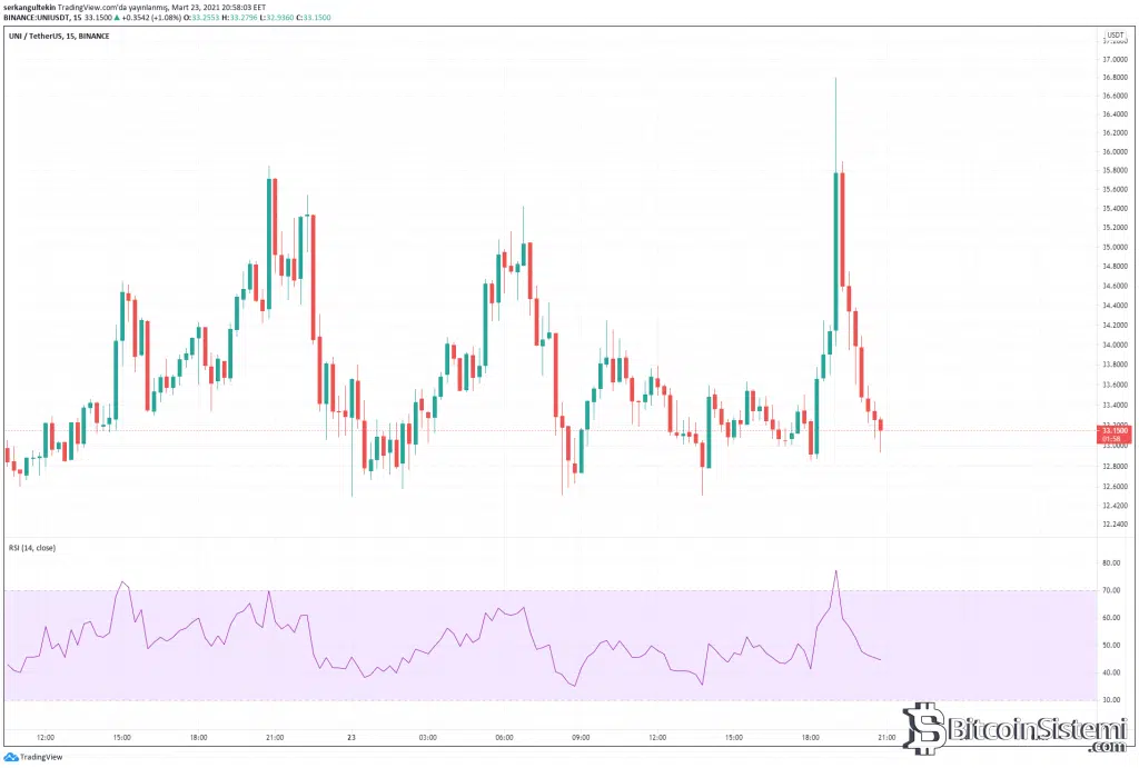 Duyuru sonrası 36.7$ seviyelerine kadar yükselen Uni sert bir satışla karşılaştı ve bu seviyeden %10 düştü.