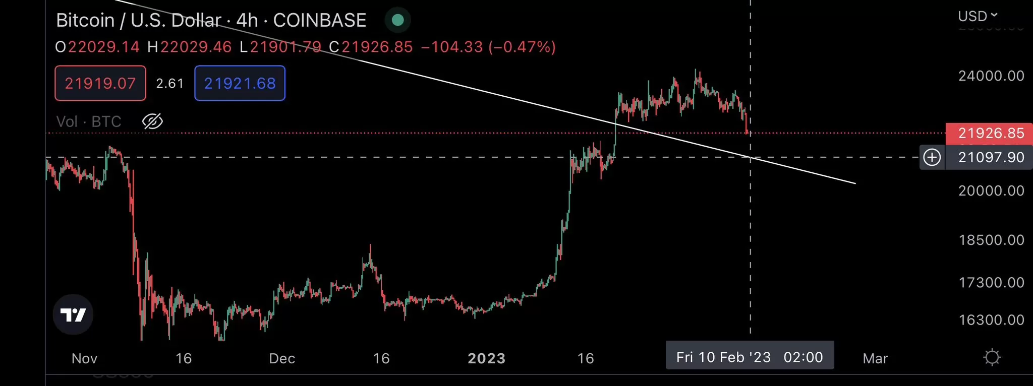 “Düşen trend sonunda kırıldı. BTC’nin beyaz çizgiyle gösterdiğim trendi bir kez daha test etmesini bekliyorum. Ardından 30.000 dolara doğru bir hareket gelebilir.”