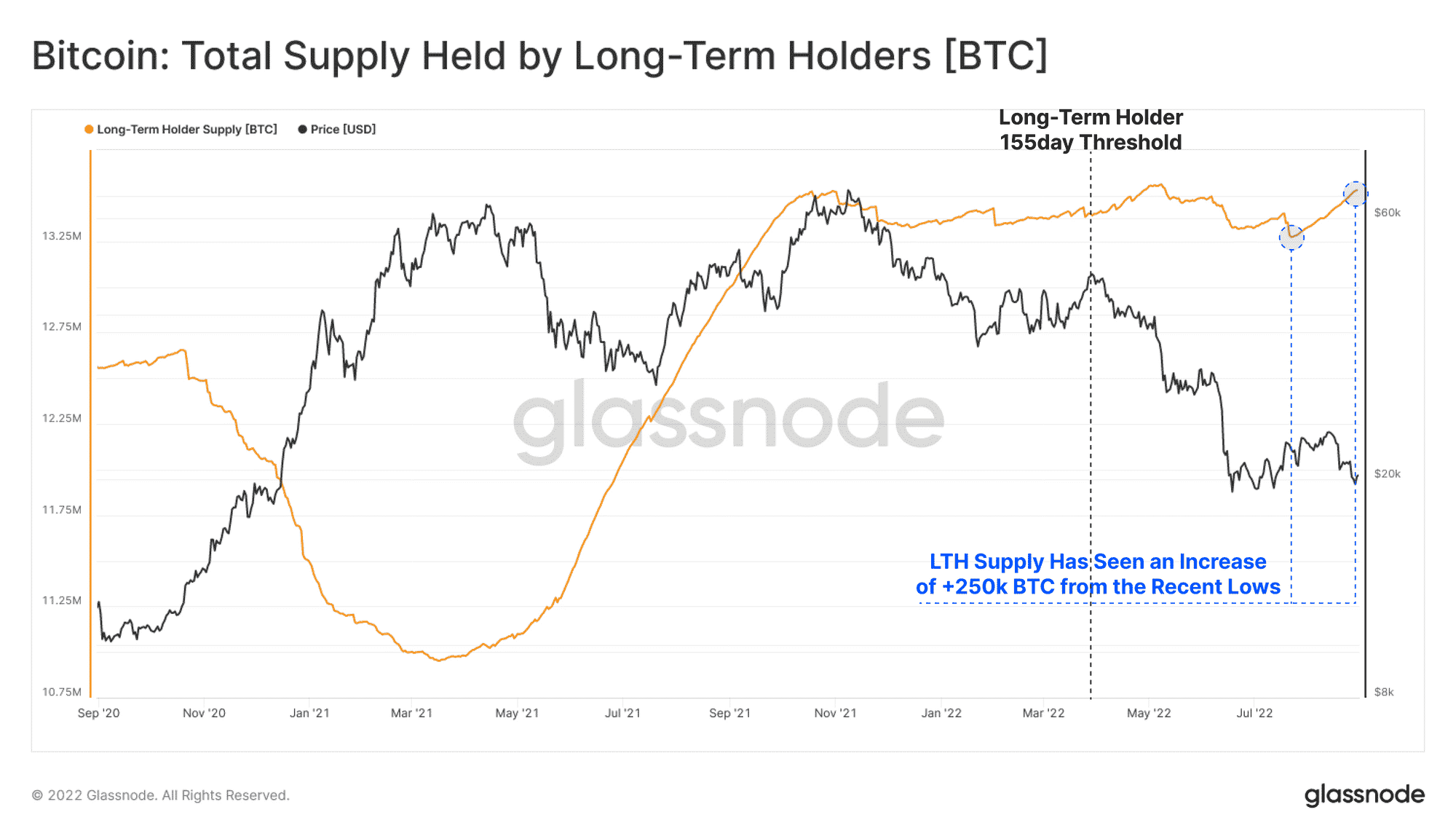 On-chain metriklerini takip eden Glassnode’un verilerine göre, uzun vadeli Bitcoin sahiplerinin elindeki toplam BTC miktarı tarihi zirveye yaklaştı.
