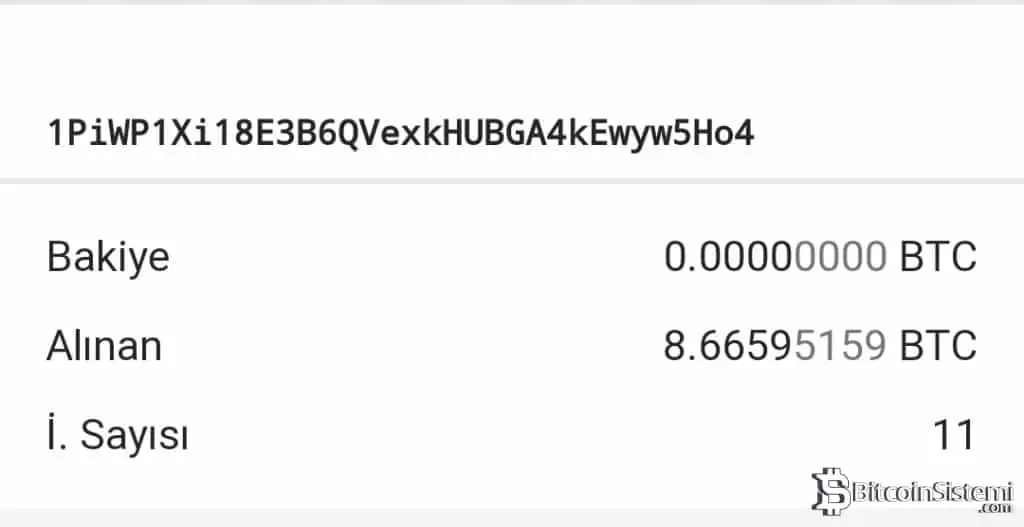 Ancak dolandırıcılar emellerine ulaştı. Cüzdana 11 farklı işlemde toplam 8.6 BTC gönderildiği tespit edildi. Gönderilen BTC’ler yaklaşık 500.000$ değerinde.