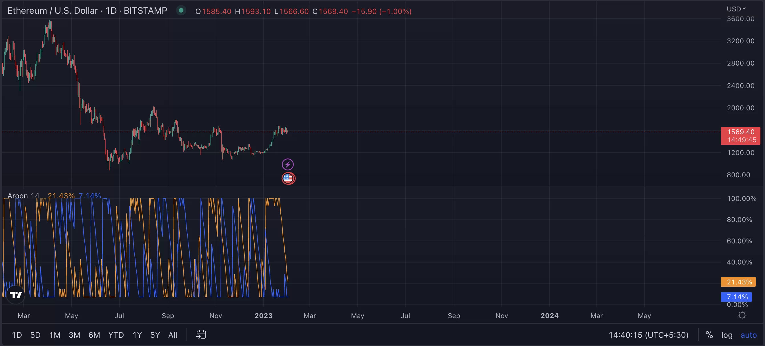 Aroon Up hattı %21.43 olarak tespit edildi.”
