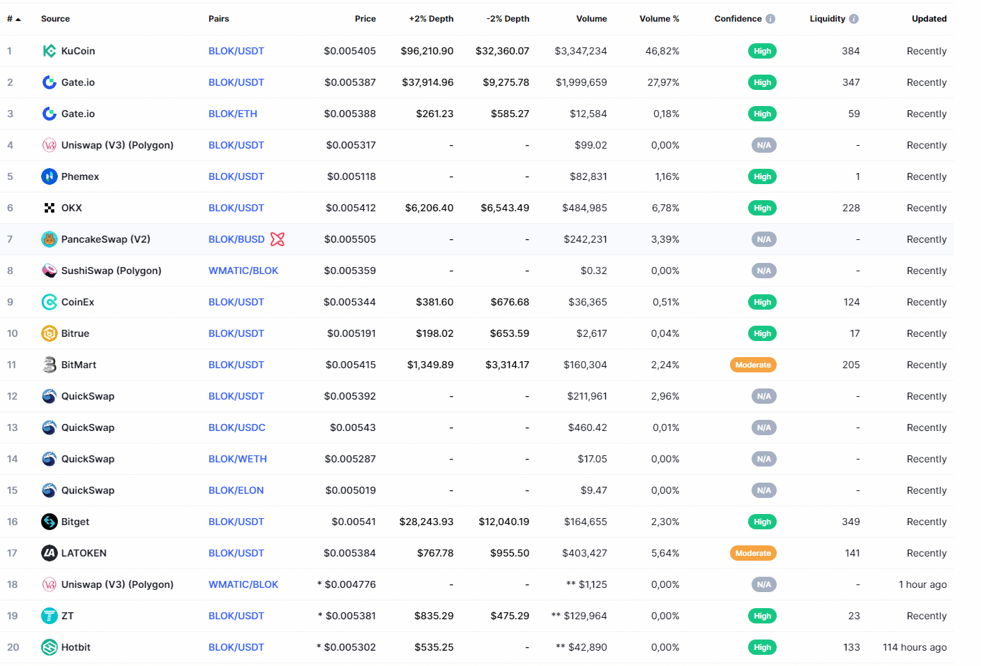 BLOK’un KuCoin dahil hali hazırda listelendiği borsalar şu şekilde: